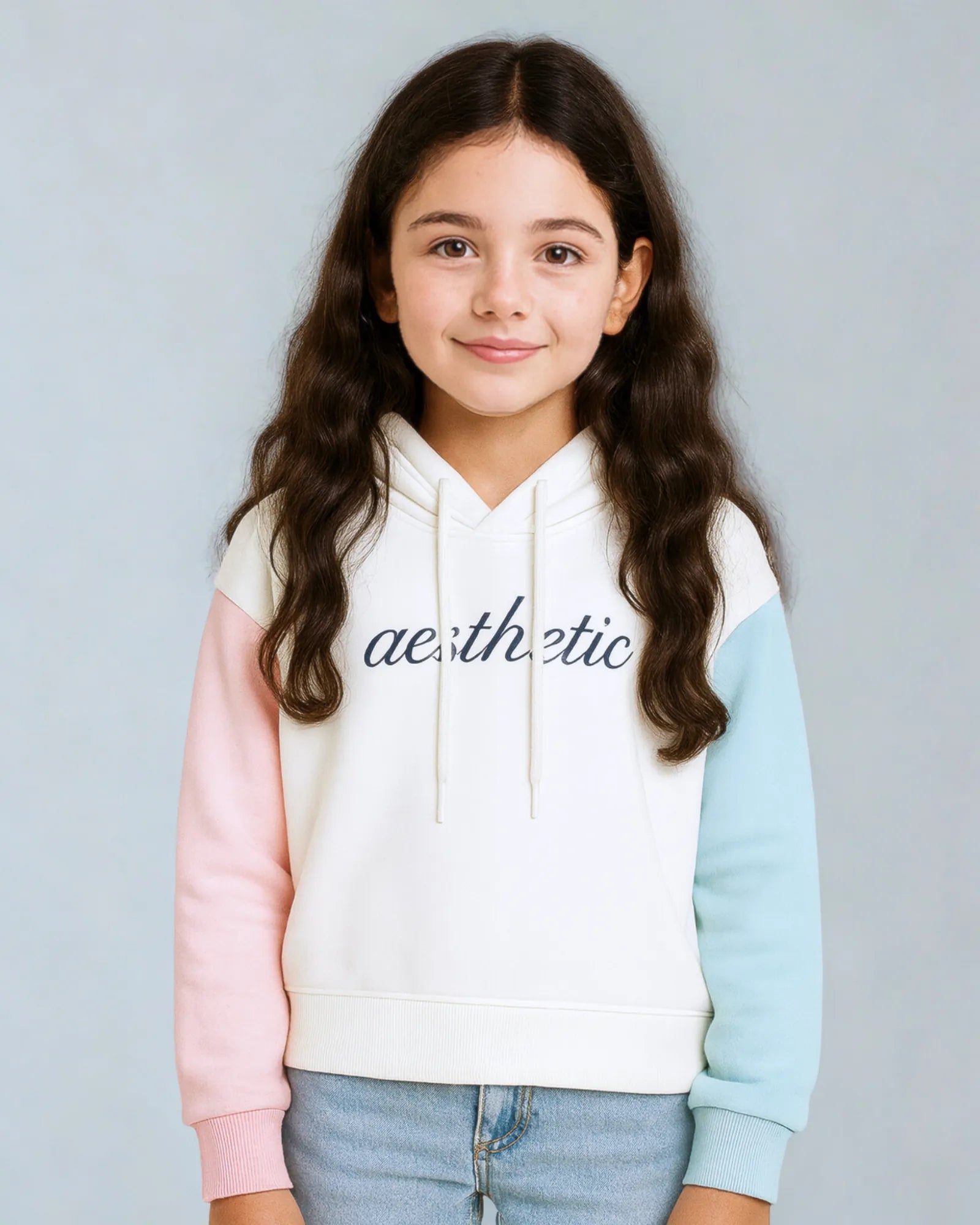 • Add a pop of style with Bubble Berry’s oversized Aesthetic hoodie. Featuring a white body with pastel pink and blue sleeves, it blends streetwear flair with all-day comfort. Soft, durable, and effortlessly trendy—perfect for school or weekend outings.